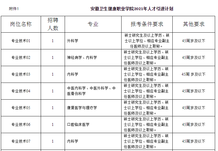 附件:1.安徽卫生健康职业银河娱乐 2021年人才引进计划